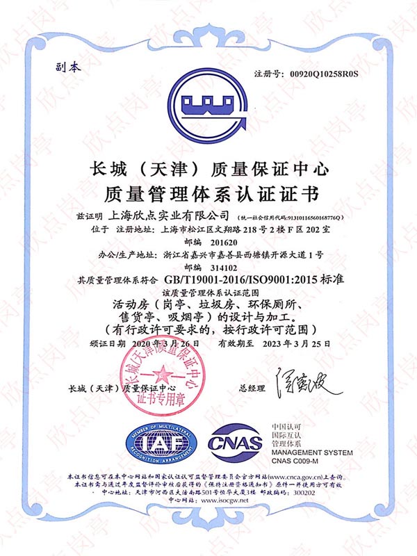 質(zhì)量管理體系認(rèn)證證書