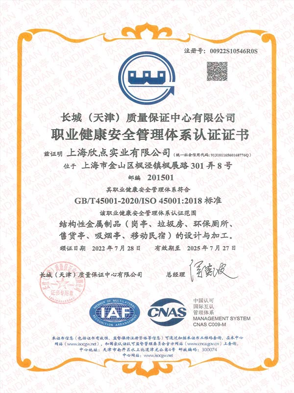 職業(yè)健康安全管理體系認(rèn)證證書