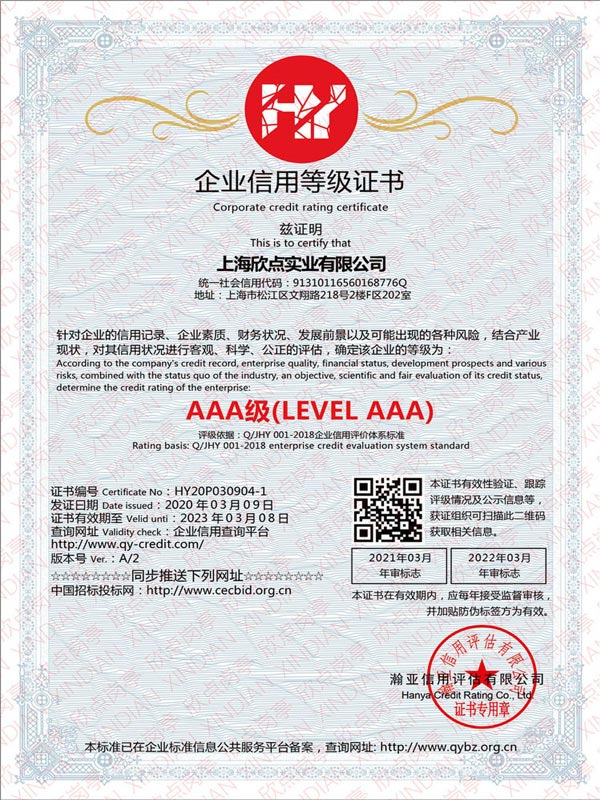 企業(yè)信用等級(jí)證書